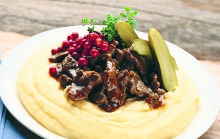 Il Sauté di renna è un piatto che vi sarà proposto sempre, viene servito con purè di patate e mirtilli rossi freschi, oppure con della marmellata di mirtilli, è comunque un classico della cucina locale che vi consigliamo di assaggiare se vi piace la selvaggina.